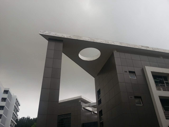 2015年6月某日,暴雨将至,乌云下的知行楼一角很有力量感