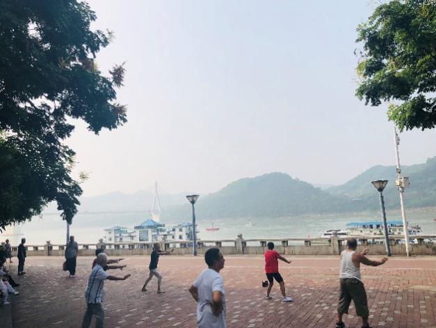 当我步入高中的校园,课业与升学的压力让我与滨江渐行渐远,只能偶得空闲漫步于滨江,这时的滨江也在悄然发生着变化,随着绿化环保意识不断深入人心,政府加大了滨江绿化的投入,滨江的绿化水平不断地提高。渐渐地,越来越多的人都会在茶余饭后走向滨江公园进行有氧运动,沿江两岸的山变的更绿,江岸的园林景观也愈发多元化,这时的滨江公园已经成为宜昌的标志性景点,锻炼的人群、绿色的植被、流淌的江水成为了这个时代最能让人铭记的江景。