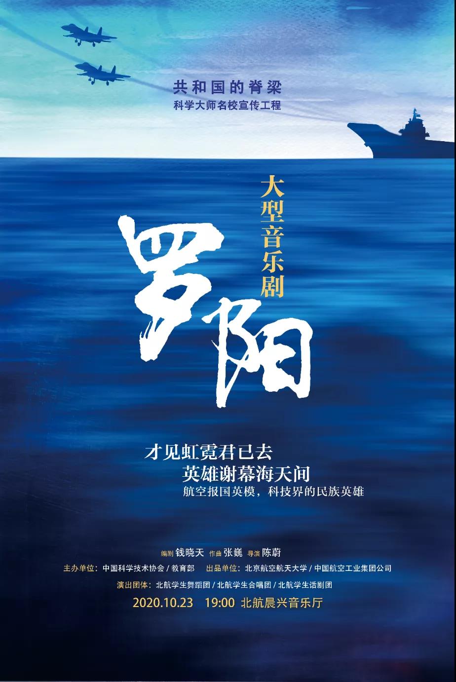 金秋十月,丹桂飘香,为充实广大新生在校生活,繁荣校园美育文化传播,传承北航文化传统和空天报国情怀,厚植新生的“爱祖国、爱航空、爱航天、爱北航”的精神品质,北航大型原创音乐剧《罗阳》的新生入学教育专场将于10月23日晚19:00在北航晨兴音乐厅准时上演,bilibili、央视频等各大直播平台将同步进行直播。