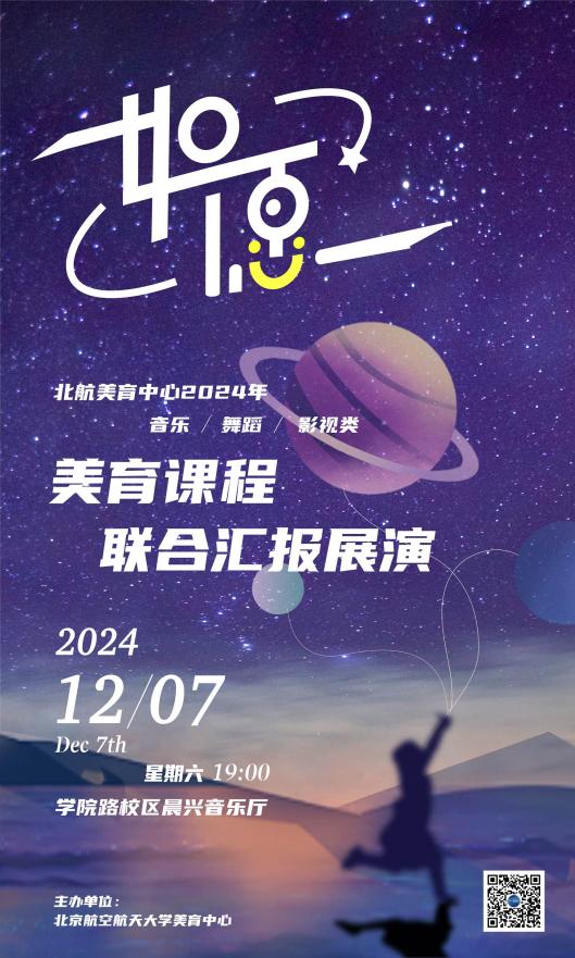 12月7日,2024年北航美育中心,音乐、舞蹈、影视类美育课程联合汇报展演,将在晨兴音乐厅隆重上映!