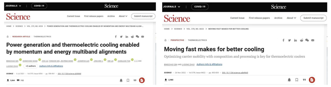 对于科研经历,他自我评价道,“始于基础研究,但不止于此”。起初,他的研究重点是新型材料的探索,更偏向于前沿基础性研究,重心在于从材料物理传输机制出发,探究材料性能优化的理论方法和实验手段。随着研究的不断深入,秦炳超越来越意识到开展热电器件和应用研究的重要性。由于热电制冷器件在精确控温和靶向控温方面的独特优势,其在5G通信光模块、光纤激光器等领域的精准温控有着不可替代的应用价值。尤其是在当前国家能源战略需求和“双碳”背景下,发展新型高性能热电制冷材料及其器件显得尤为关键。他本人也将以此为出发点,逐步将研究重心由材料基础研究向器件应用推广过渡。对于科学研究,他的最大梦想就是自己所做的研究、做出的成果、开发的新材料能够实际应用于重要领域。