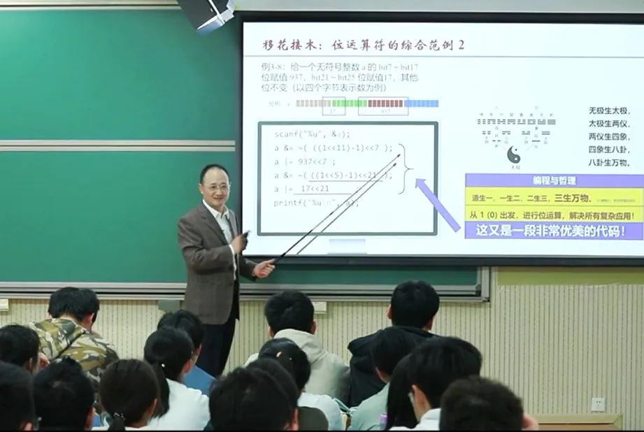 相对其他计算机语言来说,C语言是一门基础语言,但也是比较难的一门语言。课程面对的是大一刚进校的新生,绝大部分人都是没有接触过C语言知识的小白。如何让学生对C语言编程感兴趣,并能轻松入门,是宋友面临的一个难题。在第一次课上时,宋友便向同学们说明C语言学习的重要性,“学习C语言不仅仅是简单地掌握编程的一门技能,更是让我们认识二进制的世界,培养严密的逻辑思维、遵守规则的素养、追求真和美的精神,从中感受程序之美,培养高尚的情操。”