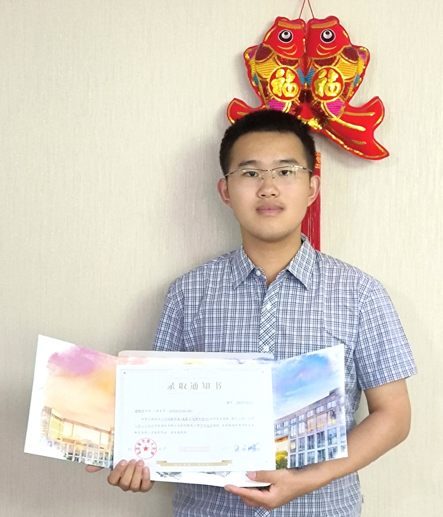 谢铠舟手持录取通知书