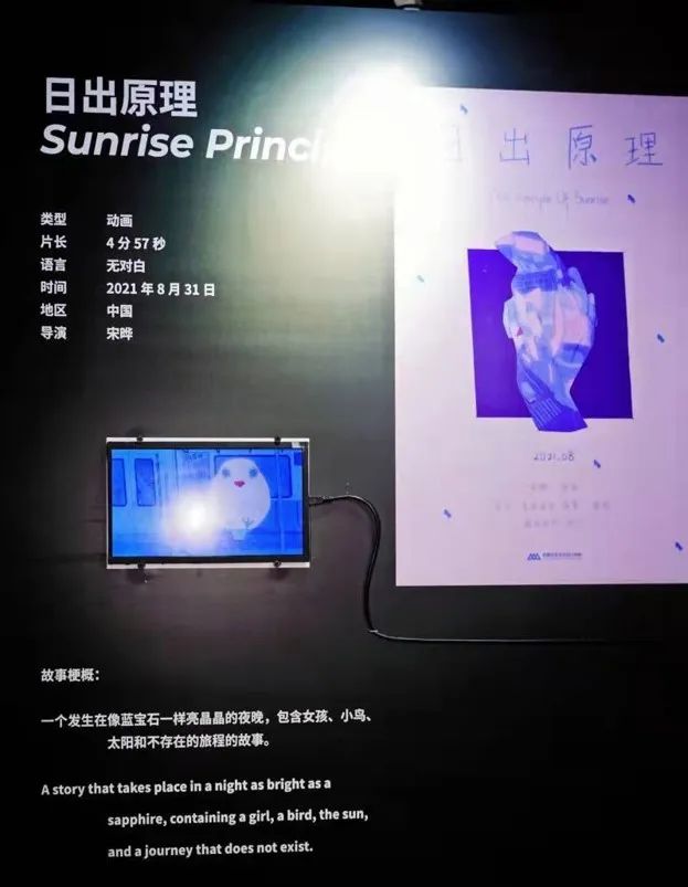 在做了两年志愿者后,宋晔以入围动画周为目标,开始了第一部短片《日出原理》的创作,她先完成了第一版剧本,接着从一张城市夜晚的场景美术出发,确定了简洁和多直线的场景和人物造型,之后绘制了分镜,把戏剧冲突安排在了片子的结尾,利用颜色的冷暖制造情绪的对比。