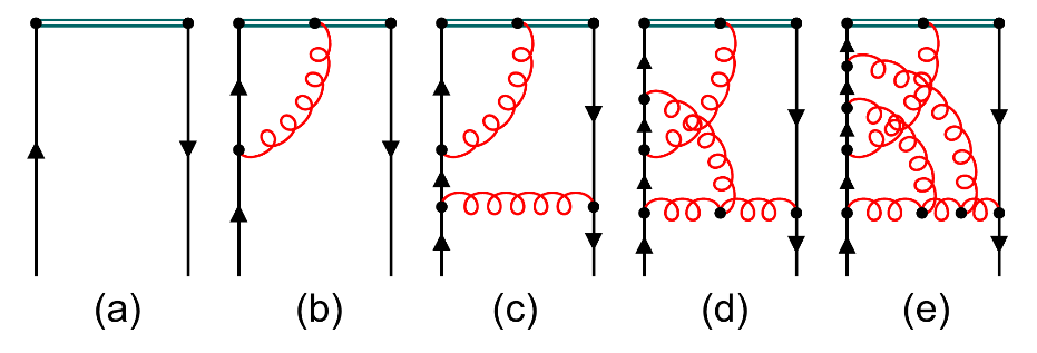 图2. 领头阶(LO)、次领头阶(NLO)、次次领头阶(NNLO)、次次次领头阶(N3LO)下的夸克关联函数的预测值和理论误差