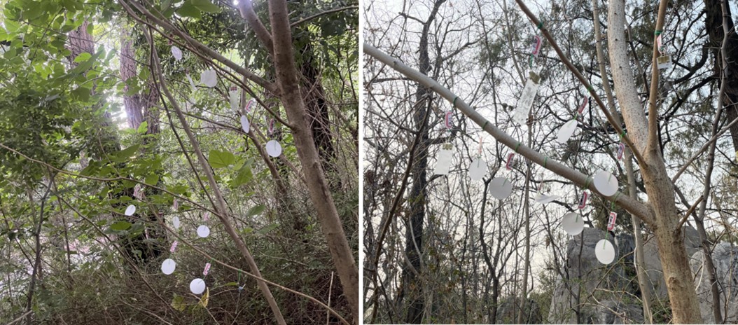 图1 空气eDNA被动采样器材料比较实验秋季(左)与春季(右)采样照片