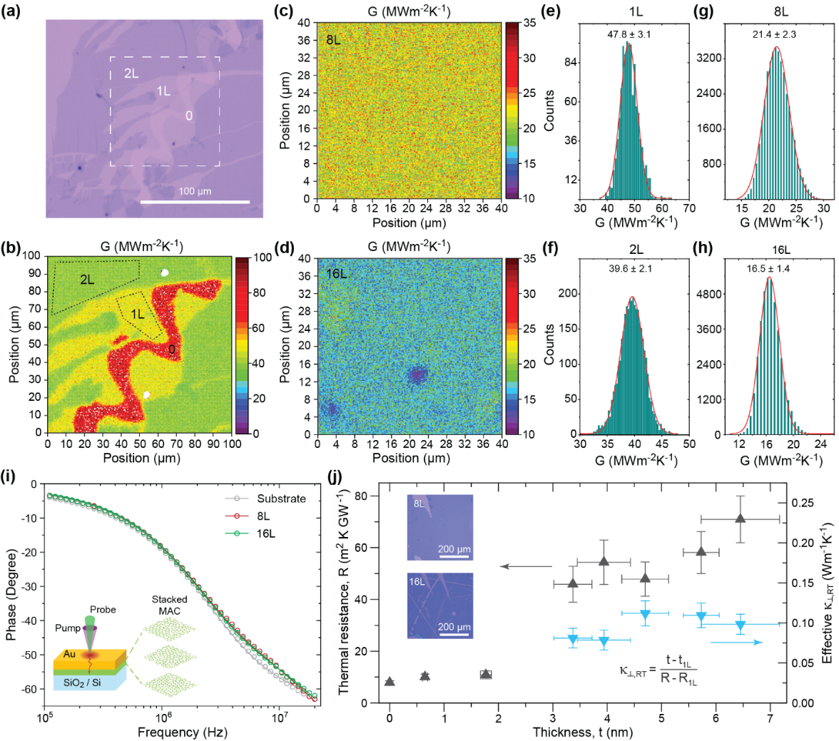 图2:二维无定形碳叠层样品的面外导热测量
