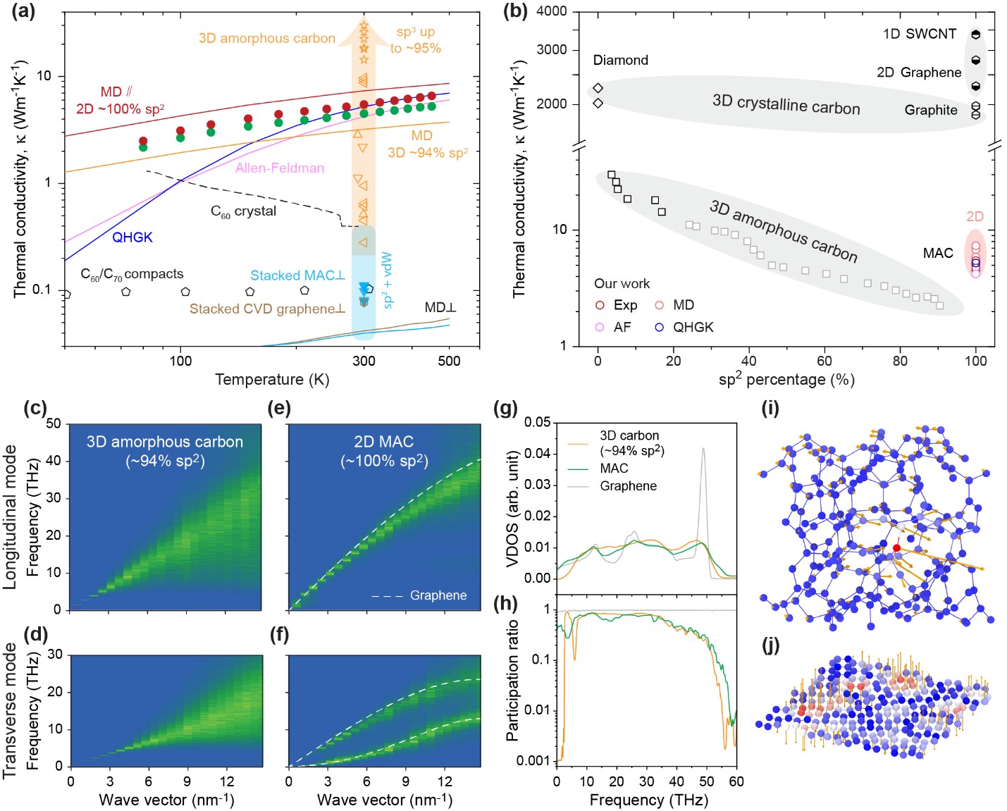 图4:二维无定形碳热输运的原子模拟与物理机制