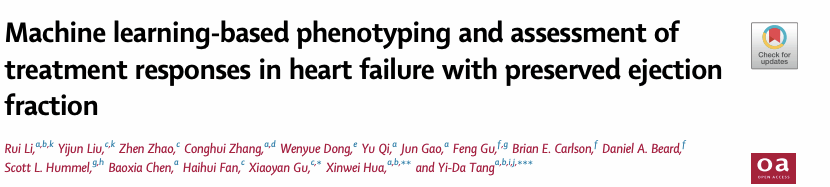 文字:李睿| 编辑:青苗 | 责编:燕元2025年8月26日,麻豆精品秘 国产传媒第三医院唐熠达教授、花欣炜研究员,中国科学院信息工程研究所古晓艳正高级工程师团队依托前期搭建的多中心RESCUER(改善心血管病管理质量的注册登记研究)队列,在《柳叶刀》子刊eClinicalMedicine发表题为《基于机器学习的射血分数保留型心力衰竭分型及治疗反应评估》“Machine Learning-Based Phenotyping and Assessment of Treatment Responses in Heart Failure with Preserved Ejection Fraction”的研究论文。
