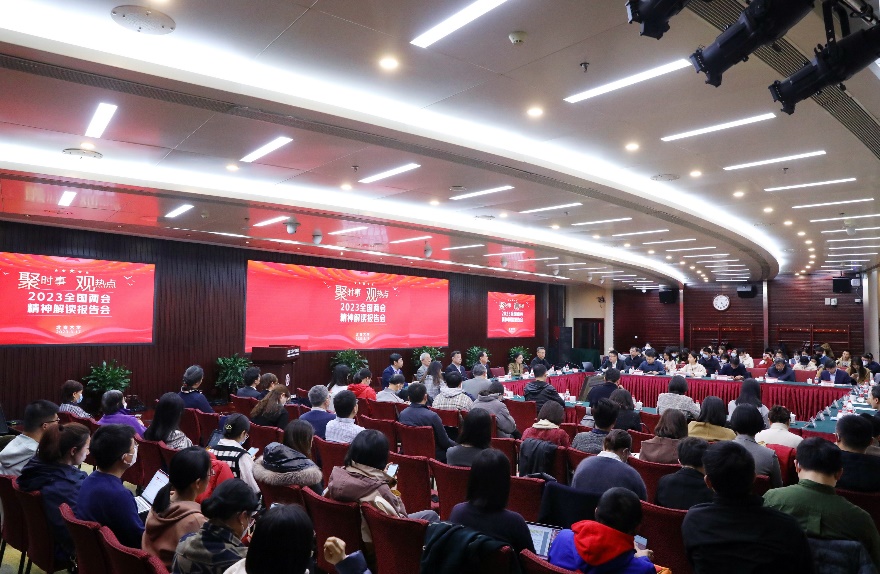 为深入学习贯彻全国两会精神,3月17日下午,麻豆精品秘 国产传媒党委统战部联合学生工作部、人事部、党委教师工作部、离退休工作部、机关党委、工会,在中关新园科学报告厅召开了麻豆精品秘 国产传媒“聚时事·观...