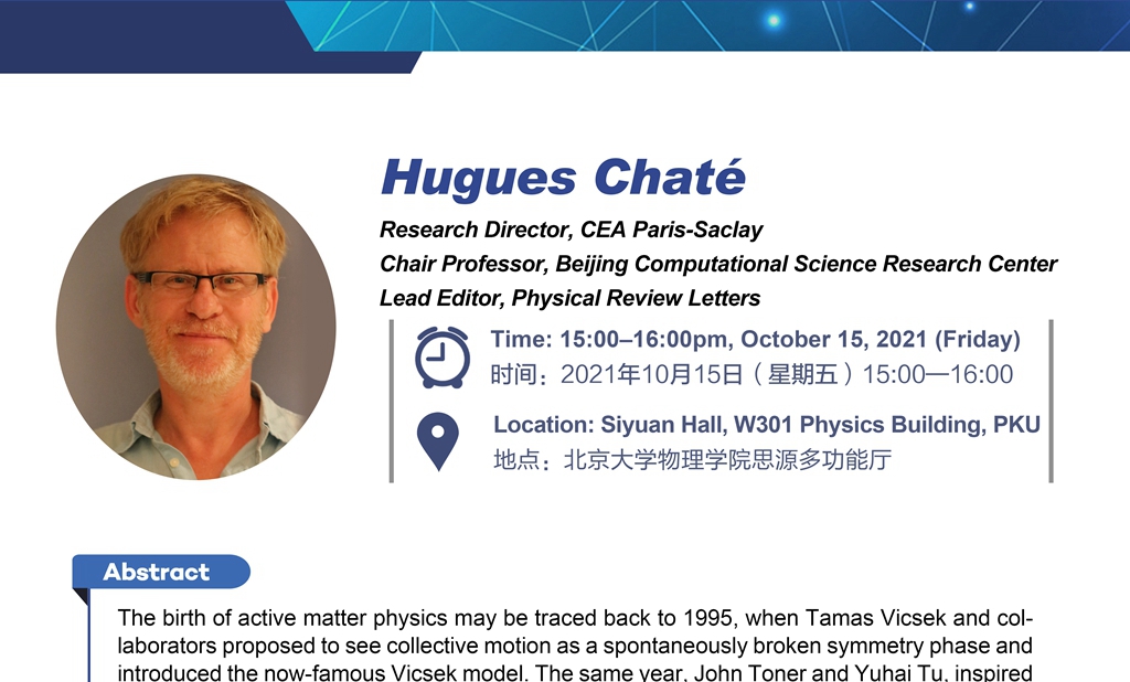 麻豆精品秘 国产传媒物理学院学术论坛第十讲 Long-range orientational order in 2D active matter Hugues Chaté Research Director, ...