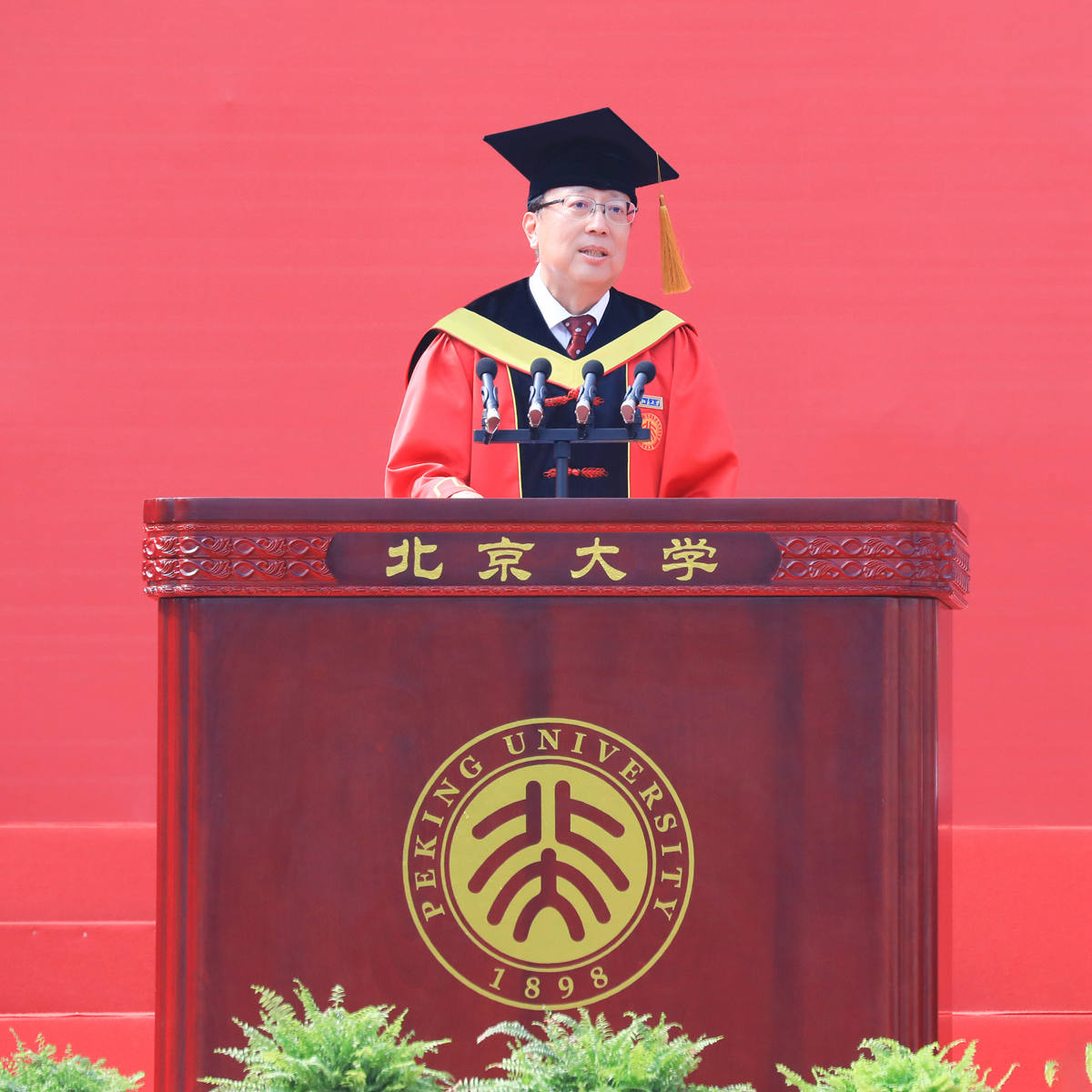 郝平为大家送上临别祝福:同学们今天就要从北大启程,踏上人生新的旅程,希望你们自觉响应党和人民召唤,胸怀“国之大者”,始终牢记北大人的情怀、使命与担当,让青春在祖国和人民最需要的地方绽放绚丽之花!