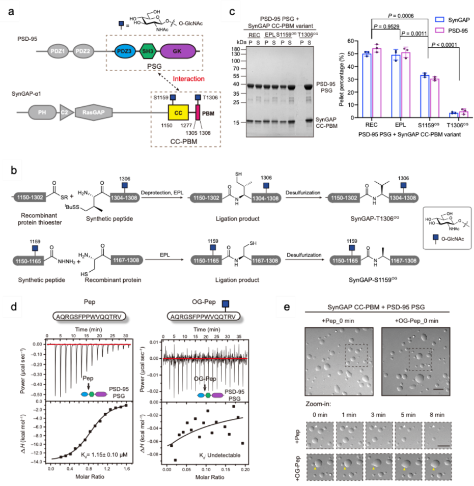 SynGAP蛋白O-GlcNAc位点鉴定,蛋白合成与抑制LLPS机理(图源:Nature Chemistry)