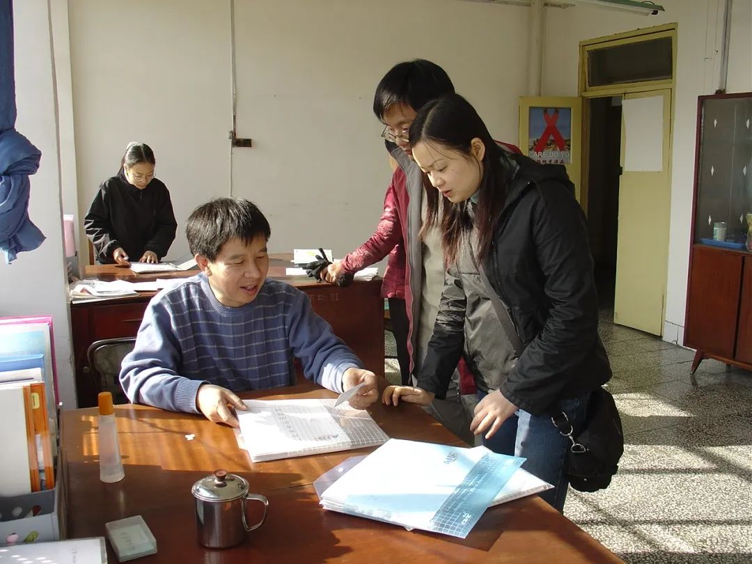 2004年,邱泽奇在中英预防艾滋病项目四川省德阳市调查现场