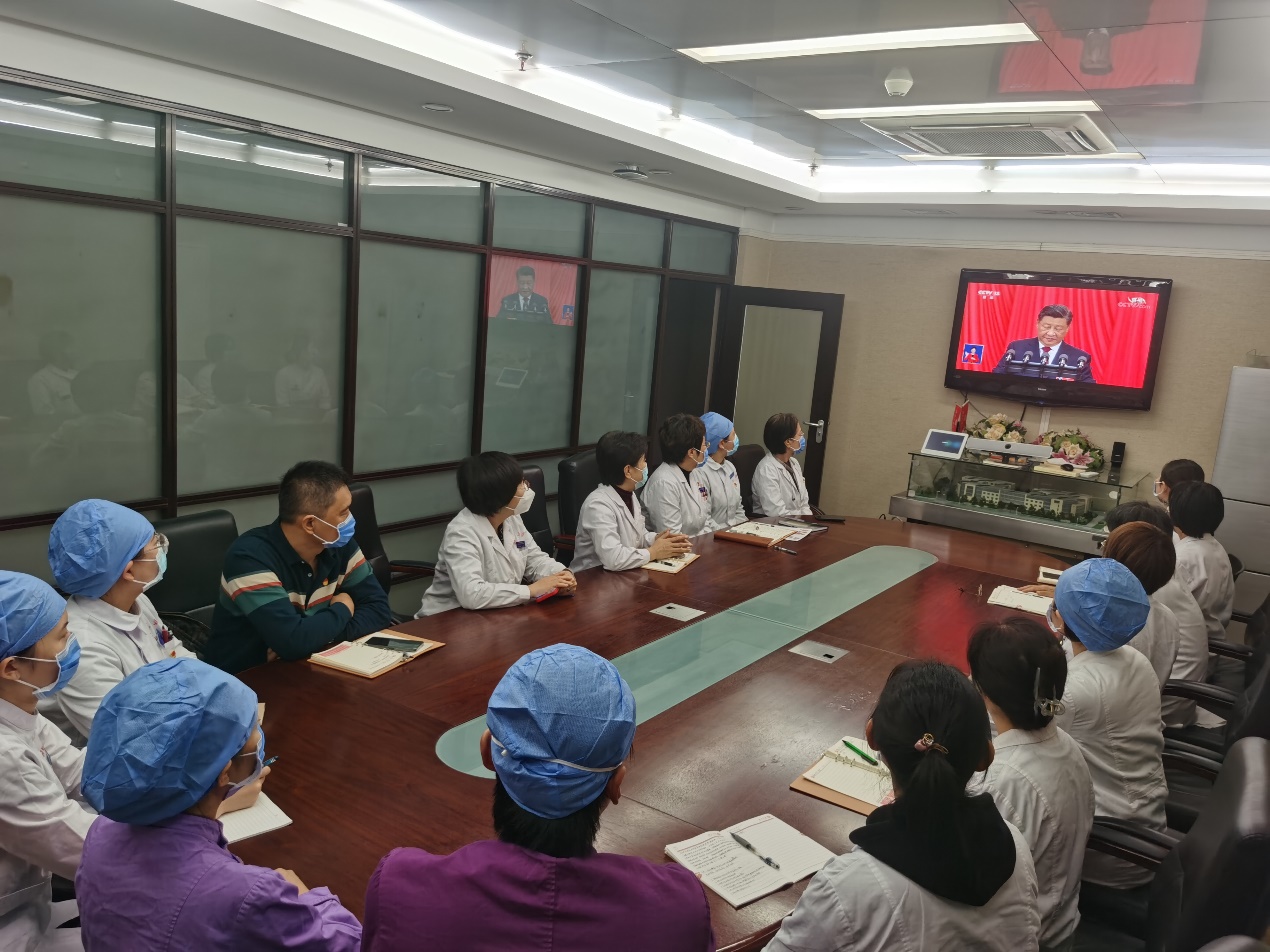 人民医院党政领导及广大党员职工集体收看(摄影:高山)