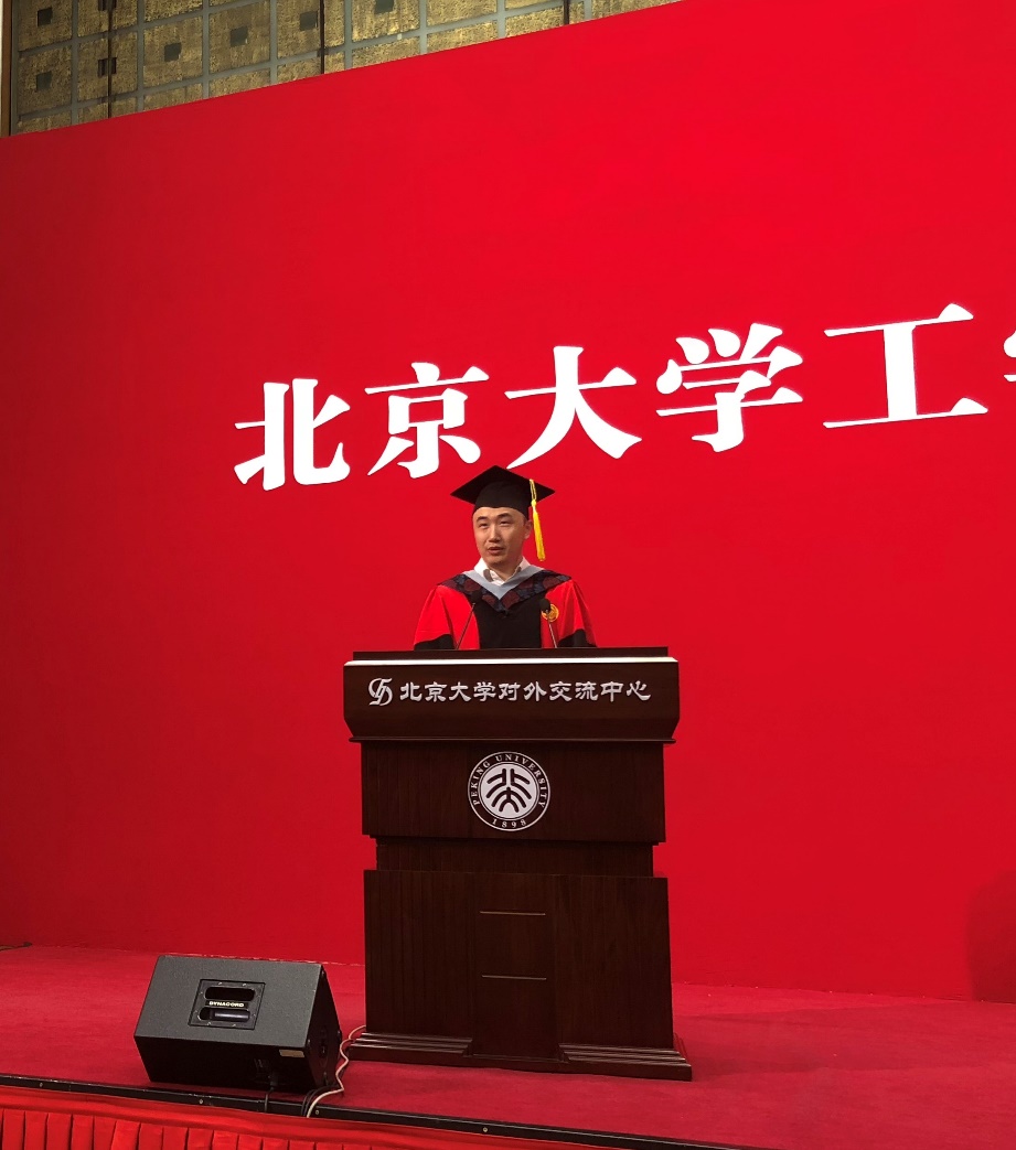 杨越在北大工学院毕业典礼上作为青年教师代表发言
