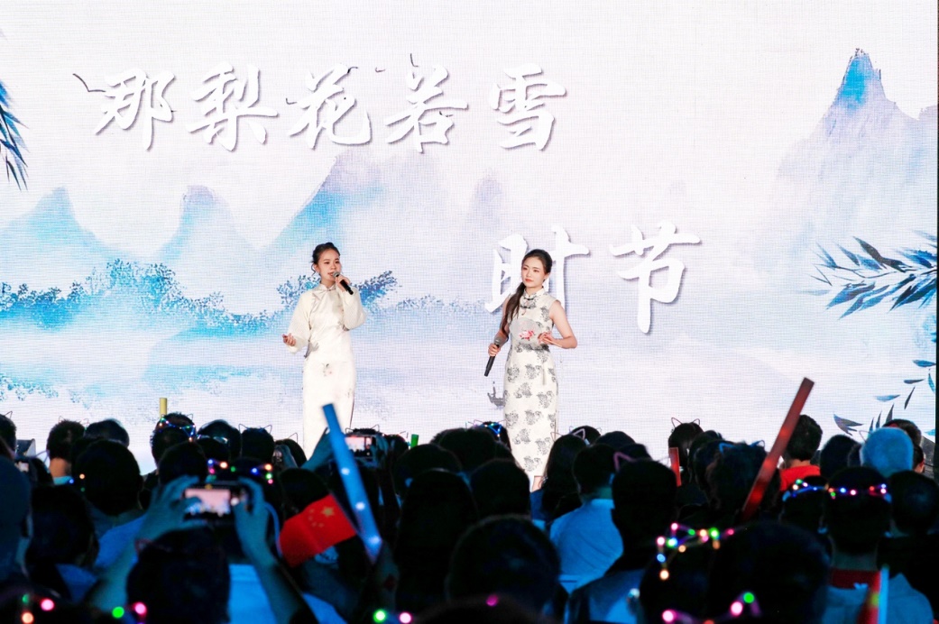 青春歌曲和经典曲目的荟萃交融:《青春大概》《夜空中最亮的星》或青涩懵懂,或温柔坚定,展示了追梦路上永不服输的骄傲与励志,观众们一起挥舞手中的荧光棒、跟随着歌手哼唱,倍感幸福充实。《今天》《春庭雪》《幸福快车》等经典歌曲更承载着北大学子对音乐与美的热忱追求,为师生带来一场视听盛宴。