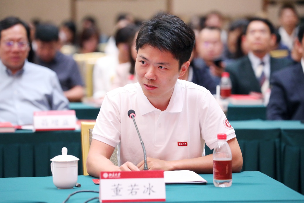 教师代表、科维理天文与天体物理研究所董若冰教授是“归巢燕”。从北大物理学院本科毕业并在国外学习和工作16年后,已在太阳系外行星系统研究领域结出硕果的董若冰回到北大成为一名2024年入职的新教师。他回顾了学生时代与老师交往的感人故事,并表示,正是师长们无私奉献的精神让他决心更好地做一名“人师”,激励并引导学生找到属于他们的人生方向。