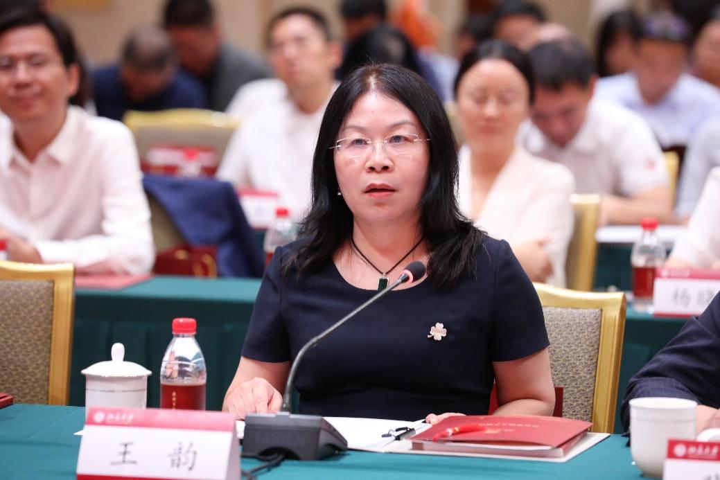 教师代表、基础医学院王韵教授回顾了在北大医学的35年时光,表示正是一代又一代的师道传承鼓舞了她,使她在成为教师后,始终以学生为中心,引导学生探索真理,师生间的“教学相长”让她体会到为师者的快乐。她号召北大教师传承师德师风优良传统,秉持教育初心,助力每一位学生的健康成长。