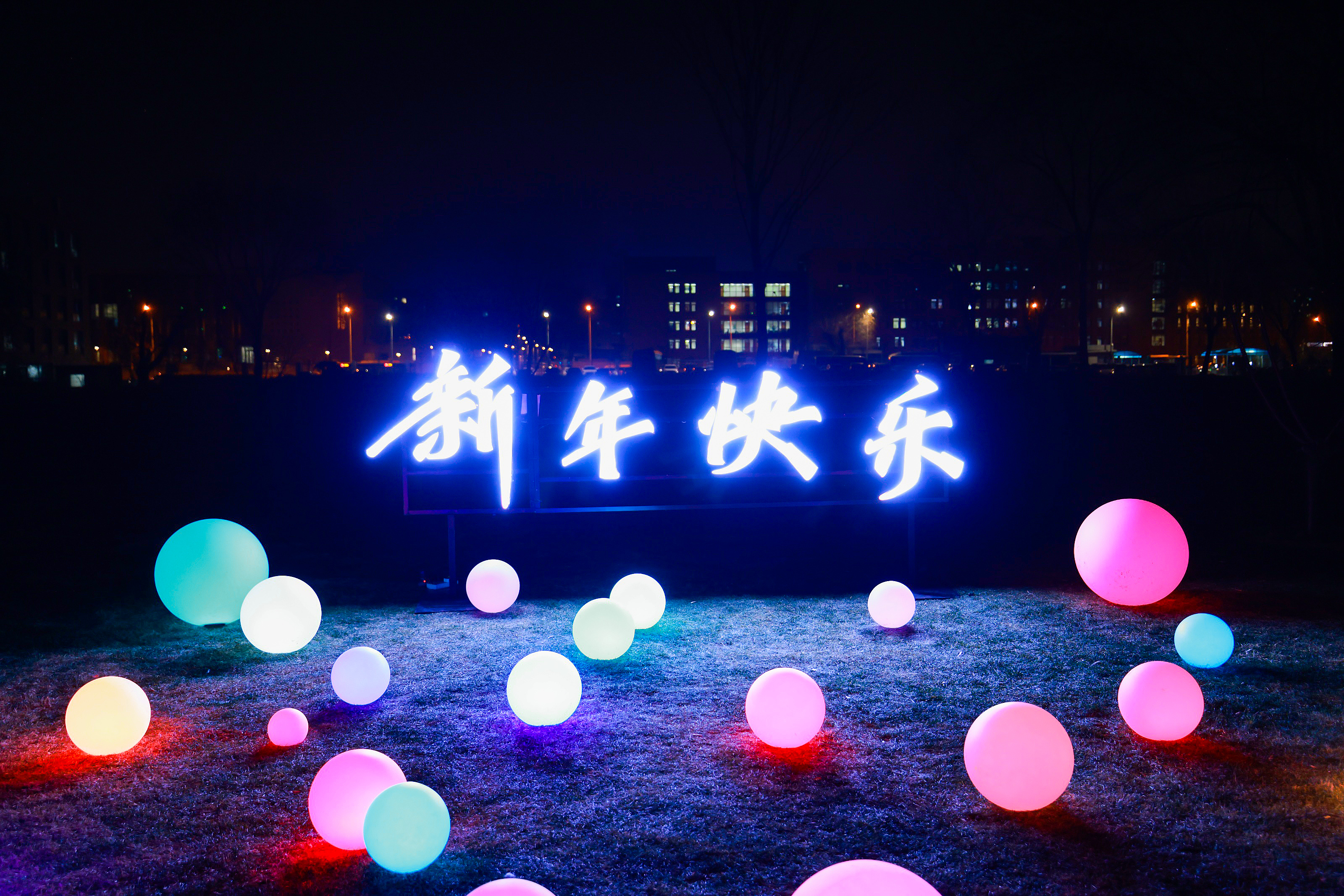 在跨年之夜,湖畔光影点亮希望